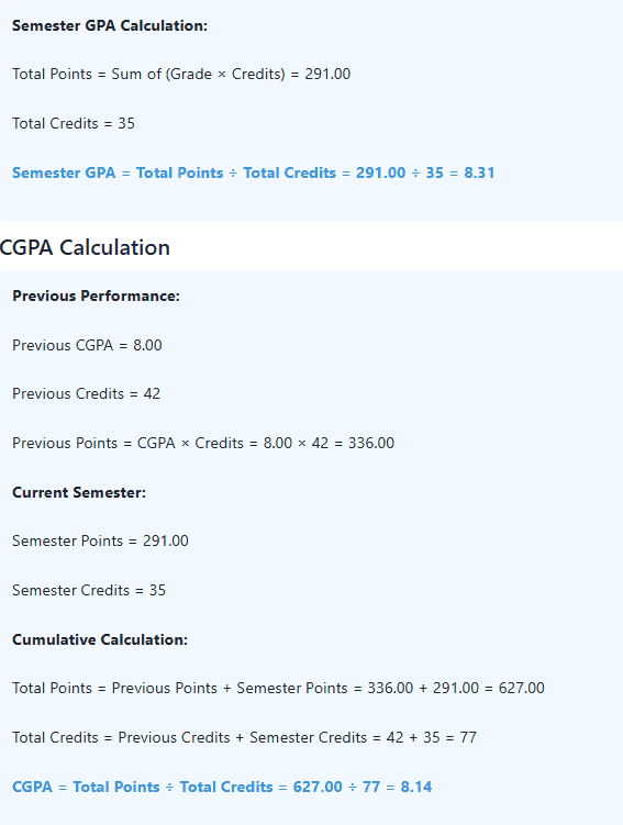 CGPA = (Sum of Grade Points × Course Credits) / Total Credits